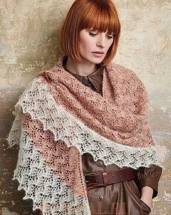 Шаль вяжется сверху вниз.