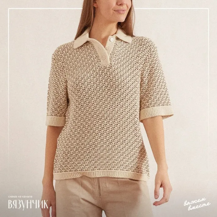 Футболка-поло, связанная спицами