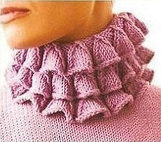 Трех ярусный волан в виде маленьких колокольчиков очень красиво смотрится на женских легких свитерах.