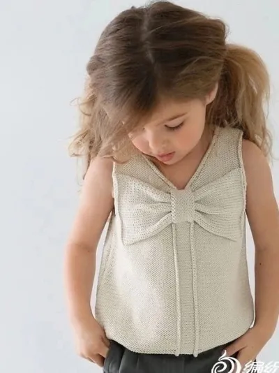 Топ или безрукавка жилетка для девочки спицами с очаровательным бантиком