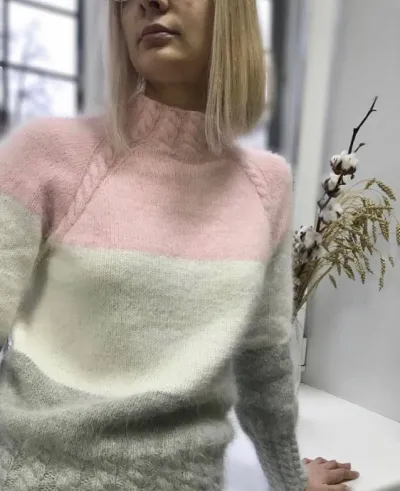 Расход - 2 розовых Мотка, 2,5 белых и 3 серых ( размер 46-48)