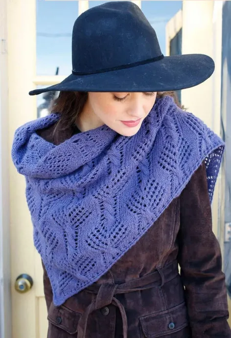 Ажурная шаль спицами с элементами рельефной вязки