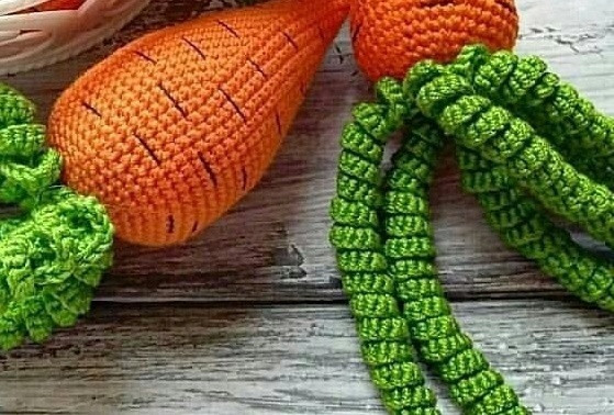 1. Пряжа двух цветов (оранжевого и зеленого цветов)