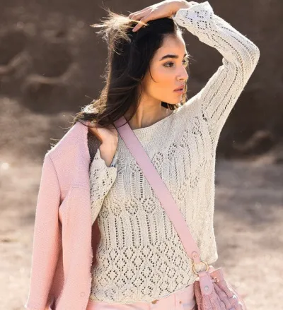 20 п. х 34,5 р. = 10 x 10 см, связано ажурным узором