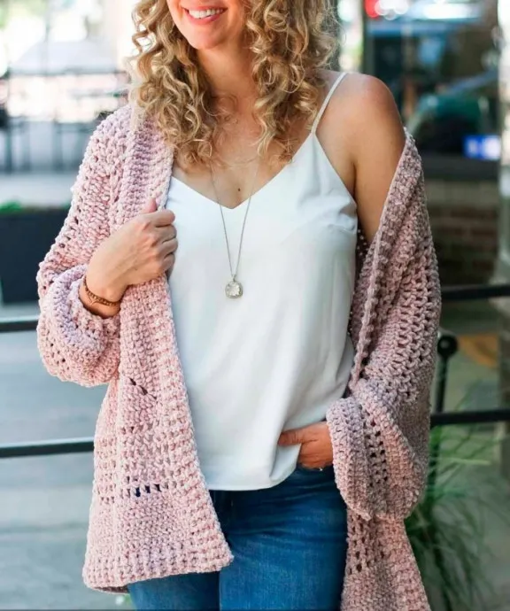 Этот невероятно удобный свитер-кардиган вяжется гораздо проще, чем кажется на первый взгляд. Он состоит из двух шестиугольников.