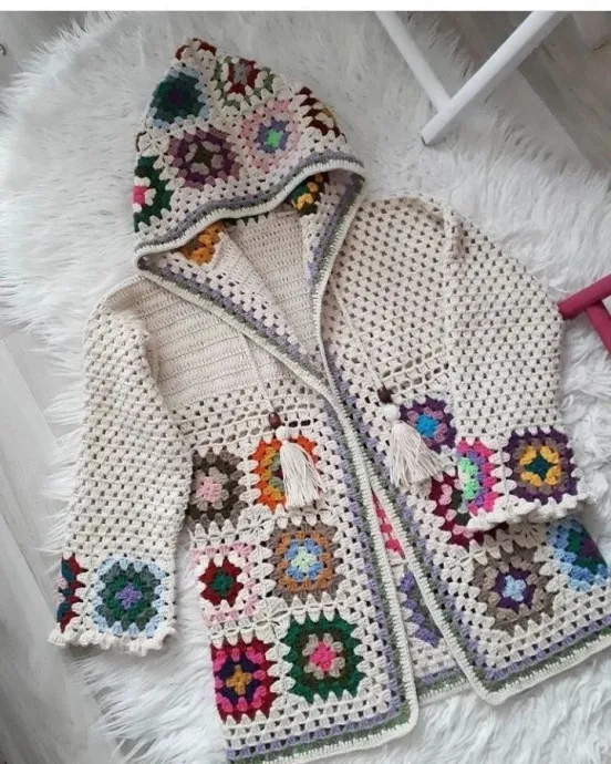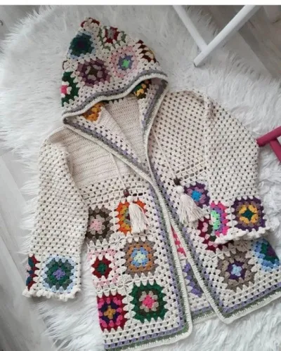 Жакет из мотива «бабушкин квадрат»: яркий и стильный элемент гардероба