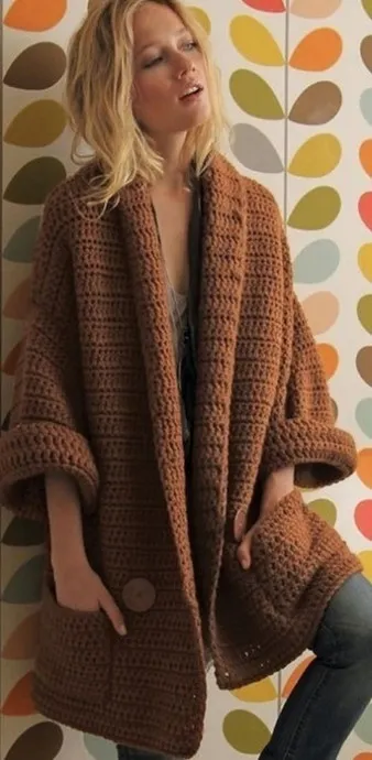 - Тепло и комфорт: Объёмные кардиганы обычно вяжутся из мягких и тёплых пряж, что делает их отличным выбором для холодного времени года.