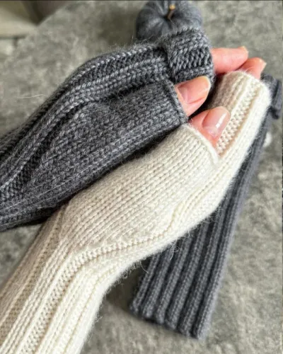 Когда все прибавки сделаны: 14 прибавок + 2 от основного узора ( всего 16 петель на пальчик ), снимаем петли на дополнительную нить.