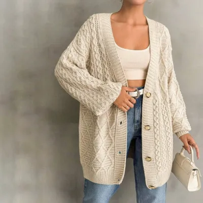 Удлинённый кардиган с ромбами и рельефными сотами