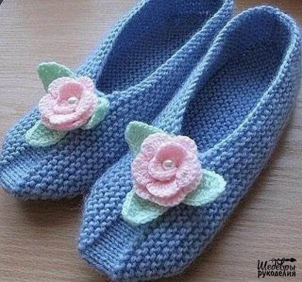Комнатные тапочки, вяжем на 2х спицах