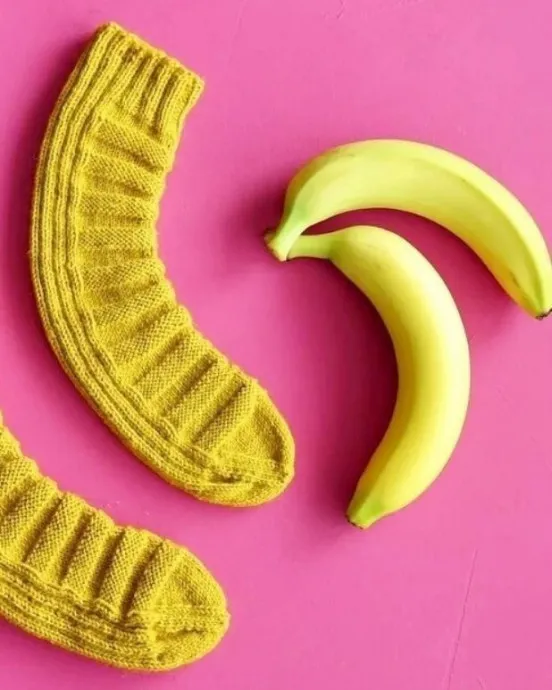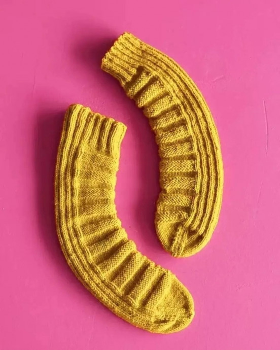 Носки-бананы очень забавны, а вязать их легко (ни убавок, ни прибавок. Вяжутся как труба, без пятки, за счет чего легко приспосабливаются к растущей ноге ребенка. Носки также являются удачным подарком для взрослых, размер ноги которых неизвестен.