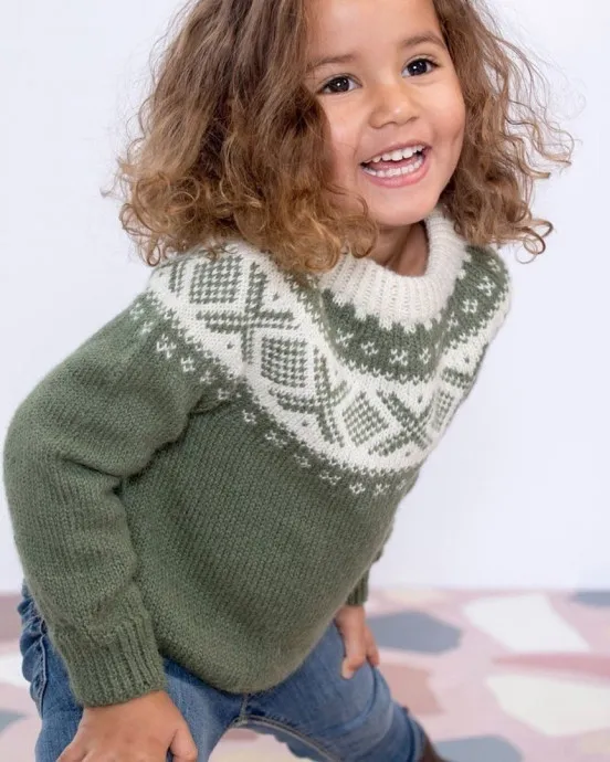 Джемпер для модницы с круглой жаккардовой кокеткой спицами