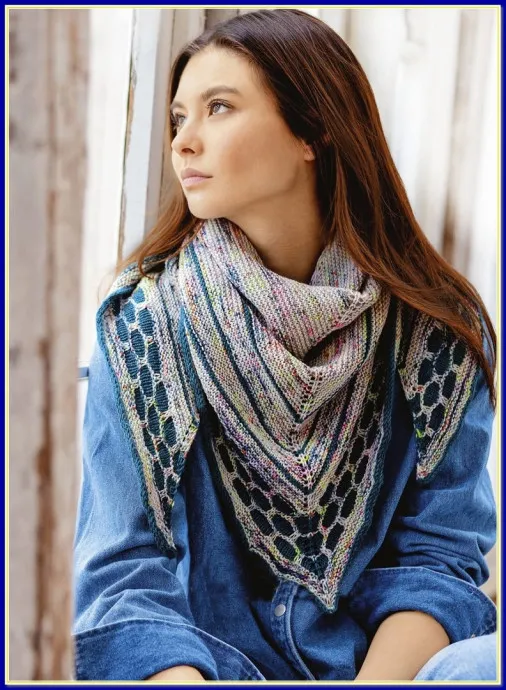 Косынка спицами контрастным узором «Соты»