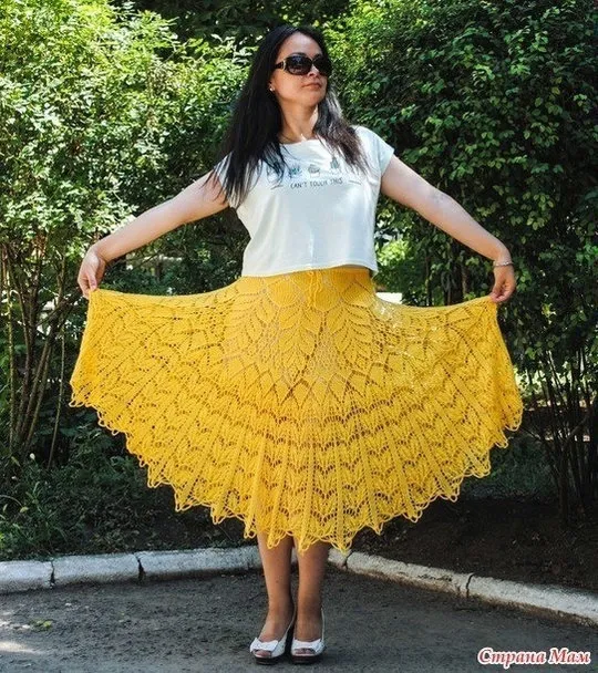 Желтая юбка спицами