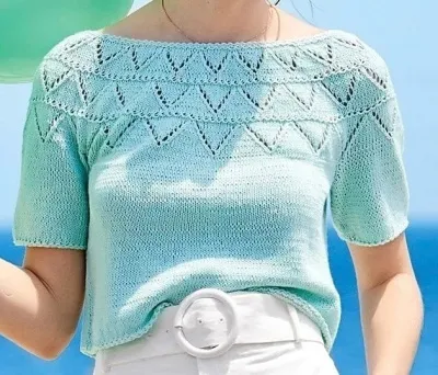 Вот и всё наша летняя кофточка с круглой кокеткой готова.