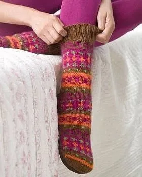Яркие и теплые носочки вязаные на спицах выполнены из шерстяной пряжи ярких насыщенных оттенков.