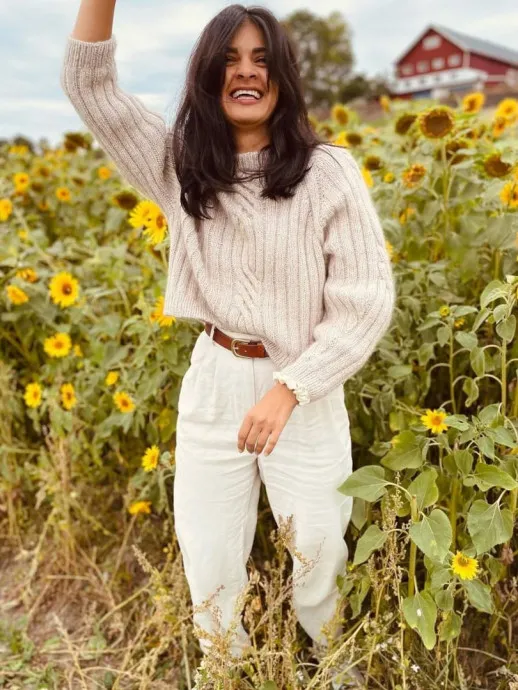 У пуловера должен быть положительный припуск. 10-20 см. Выберите размер, у которого конечный размер в окр. груди примерно на 10-20 см больше, чем размер вашего тела.