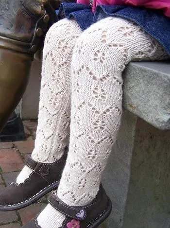 Вязать далее, чередуя цветочный узор и узор «зиг-заг» пока длина левой ноги не достигнет 23[26.5, 30, 34, 38] см. Перейти на чулочные спицы меньшего размера и продолжить вязать до длины ноги 31.5[35.5, 39, 43, 47] см., закончить после завершения вязания раппорта узора.