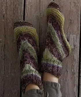 Для подошвы вязать 22 круга платочным узором, далее сложить носок пополам, распределив петли на 2 спицы (носок нужно сложить вдоль) и провязать по 2 п. вместе лиц. с каждой спицы, закрывая петли.