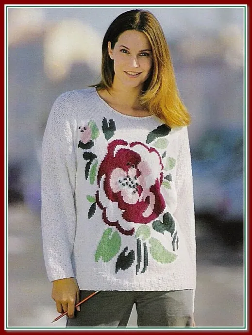 Белый пуловер с цветком