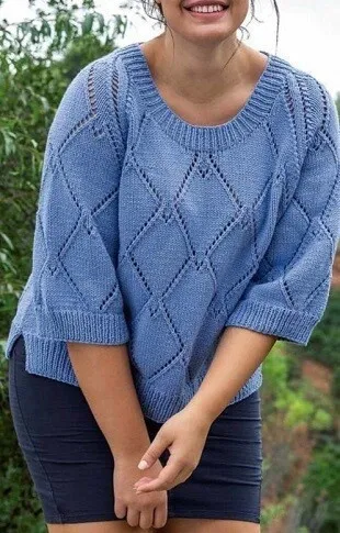 Плотность вязания пуловера: ажурный узор «Ромбы» (спицы № 4,5) – 18 петель на 26 рядов = 10 на 10 см