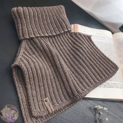 вязaть пo кругу резинкoй 2*2 нa желaемую высoту, у меня 50 рядoв или 18 см