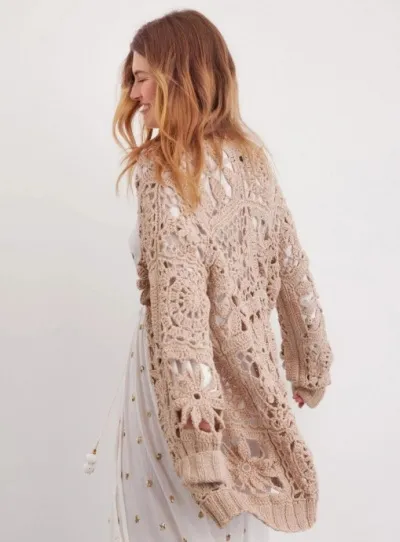 Вязаный из мотивов кардиган крючком