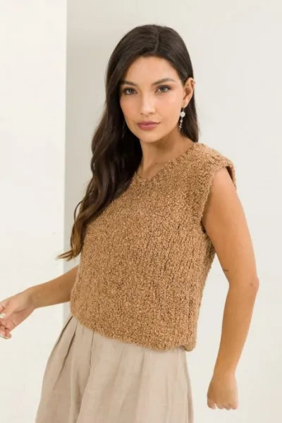 ОПИСАНИЕ. Спинка. На спицы № 7 наберите 50 петель и вяжите 2 ряда резинкой 1/1, затем лицевой гладью. Прибавьте с каждой стороны в каждом 2-м ряду по 1 петле 5 раз. Через 35 см от начала работы для пройм убавьте с каждой стороны по 2 петле 2 раза и по 1 петле 1 раз. Через 52 см закройте оставшиеся петли. Перед. На спицы № 7 наберите 60 петель и вяжите 2 ряда резинкой 1/1, затем лицевой гладью. Через 35 см от начала работы для пройм убавьте с каждой стороны по 2 петле 2 раза и по 1 петле 1 раз. Через 44 см от начала работы для горловины закройте центральные 14 петель и каждую сторону вяжите раздельно. Для выреза горловины в каждом 2-м ряду с каждой стороны закройте 4 п., 3 п., 2 п. и 1 п.