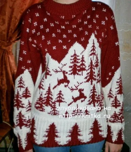 Связала дочери в подарок к Новому году пуловер спицами . Использовала нить “Пехорка Бисерная” 450м в 100 гр, вязала в 2 нити, поэтому расход больше, чем в описании. Вязала точно по описанию, лишь горловину изменила, сделала стойкой.