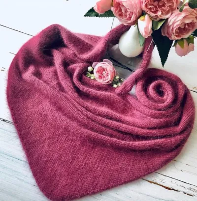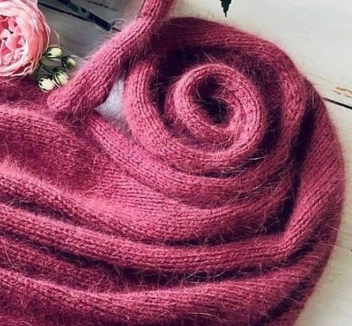 4 изн.ряд: первая петля кромочная снимается, ниточку перекидываем вперед, снимаем две изнаночные !не провязывая!, далее все изнаночные (за переднюю стенку)