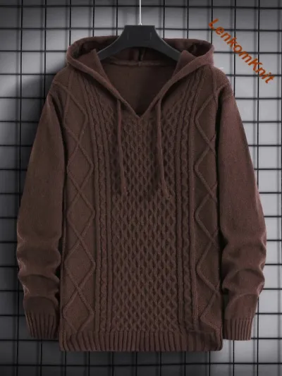 Теплый свитер-толстовка с капюшоном и интересным (но классическим) рельефным узором спереди.
