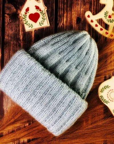 Далее вязать 11см резинкой 2х2, затем - ещё 4 ряда нижнего фиксированного отворота. Провязать 13 см резинкой 2х2