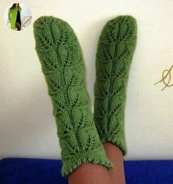 ОПИСАНИЕ: Вязание на 4-х спицах. Размер 38 вяжем 2 рисунка: в центре - листочки, а по краям - скрещенные 4 петли и между ними 3 изнан. Набрать 66 петель и распределить на 4 спицы. Вяжем 4 ряда - лицевыми. 5 р - 4 лиц,3 изн,4 лиц,3изн,4 лиц,3 мзн,7 лиц,2 вм лиц, накид,1 лиц,1 изн, 2 вм л, накид,7 лиц,3 изн, 4лиц, 3изн,4 лиц,3 изн,4лиц,3изн 6 р - 4л,3 из, 4л,3 из,4л,3 из, 6 л, 2 вместе л,2 л, накид,1 л, 1 из,1 л, накид, 2 л,2вм л,6 л,3из,4л,3из,4л,3из,4л,3из 7 р - 4л,3 из, 4л,3 из,4л,3 из, 5 л,2 вм,1л, накид,2 л,1из,2 л, накид,1л,2 вм, 5л,3из, 4 л 3из,4л, 3из 8 р - 4л,3 из, 4л,3 из,4л 3 из, 4 л, 2 вм,3л, накид,1л,1из,1л, накид,3л,2вм,4 л,3из,4л,3из,4л,3из 9 р - накид,2л снять на доп. сп, следующие 2 вместе лиц, затем с доп. спицы-провязать 2вм л, накид, 3 из, накид, 2 снять на доп сп, 2провяз вместе, с доп. спицы -2вместе, накид, 3 из, накид, 2 снять на доп. сп, 2 вместе, с доп. спицы - 2 вместе, накид, 3 изн, 3 лиц, 2 вместе, 2 лиц, накид, 3 лиц, 1 изнан, 3 лиц, накид, 2 лиц, 2 вм, 3 лиц, 3 изн, накид, 2 снять на доп. сп., 2 вместе лиц, с дополн. спицы - 2 вместе, накид, 3 изн, накид, 2 снять на доп. сп, 2 вместе лиц, сдоп. спицы - 2 вместе, накид, 3 изн, накид, 2 снять на доп. сп, 2вместе, с доп. спицы- 2 вместе, накид, 3 изн 10 р - 4лиц, 3 изн,4 лиц, 3 изн,4 диц, 3изн, 2 лиц, 2 вм, 4 лиц, накид, 2 лиц, 1 изн, 2 лиц, накид, 4 лиц, 2 вм лиц, 2 лиц, 3изн, 4 лиц, 3 изн, 4 лиц, 3 изн, 4 лиц, 3 изн 11 р - 4 лиц, 3 изн, 4 лиц, 3 изн,4 лиц, 3 изн, 1 лиц, 2 вм лиц, 3 л, накид, 4 лиц, 1 изн, 4 лиц, накид, 3 лиц, 2 вм лиц, 1 л, 3 изн, 4 лиц, 3 из, 4 лиц, 3 из, 4 лиц, 3 из 12 р - 4 лиц, 3 из, 4 л, 3 из,4 л, 3 из, 2 вм лиц, 5 лиц, накид, 3 лиц, 1 изн, 3 лиц, накид, 5 лиц, 2 вм, 3 изн, 4 л, 3из, 4 л, 3 из, 4 л, 3 из