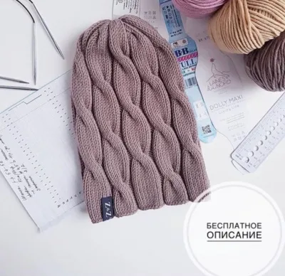 перекрещивание петель каждый 11-ый ряд в любую удобную вам сторону), внимание! На схеме показан расчёт на шапочку размера 54-56, увеличив рапорт до 22 петель, то есть лицевых Зизнаночных Злицевых Зизнаночных, получаем размер шапочки