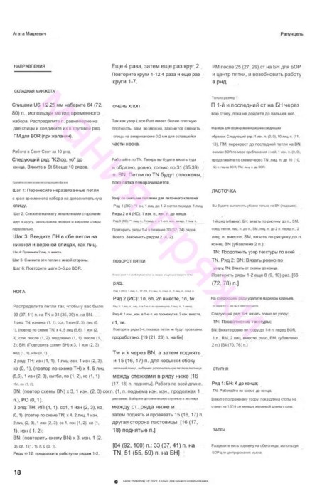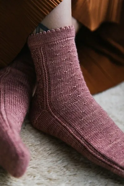 • Эти носки связаны от манжеты вниз с пяткой Eye of the Partridge и ластовицей на нижней части стопы. • Носки начинаются с манжеты с загнутым краем пико.