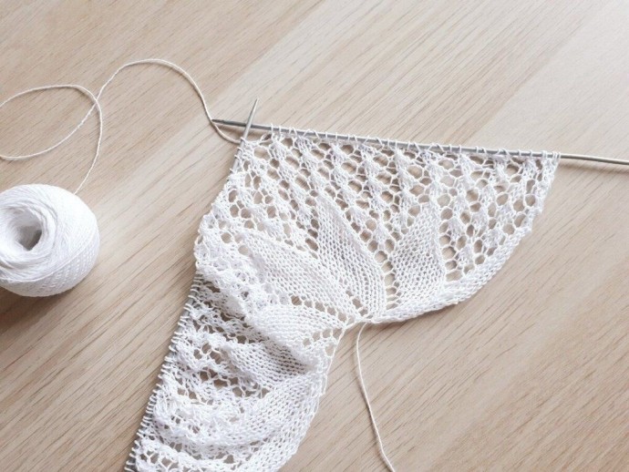 Чтобы описание было компактным, напишу условные сокращения: 1 н - 1 накид, 1 л - 1 лицевая петля, 2 вм - 2 петли, провязанные вместе лицевой петлей, 3 вм - 3 петли, провязанные вместе. От * до * - раппорт, повторяют до конца ряда.