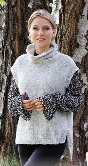 Понадобится: Пряжа DROPS AIR 350-400-400-450-500-550 г, цвет 03, жемчужный серый. Жилет вяжется в 2 нити.