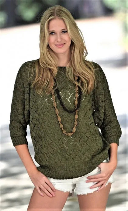 Вам потребуется: 500 (550) ((600)) г оливкового цвета Fb. 232 (67% хлопок, 33% вискоза, 158 м/50 г); спицы №3.