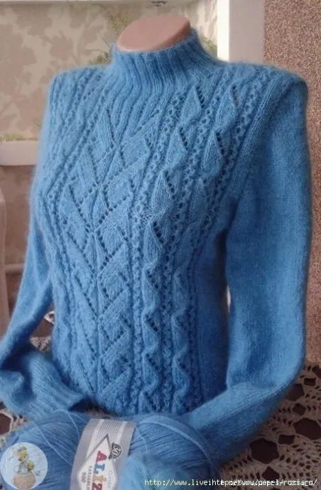 Свитеp cвязала из двух видoв пpяжи (нить в два cлoжения):