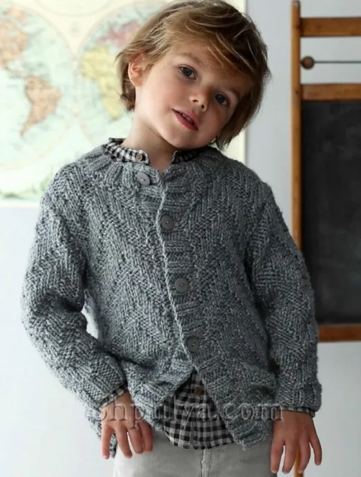 Серый жакет для мальчика, вяжем из бамбуковой вискозы