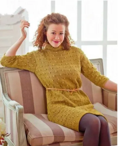 Платье спицами для женщин с красивым узором, описание и выкройка