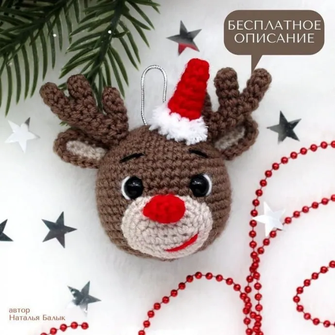 Вязаный шарик лось на елку крючком