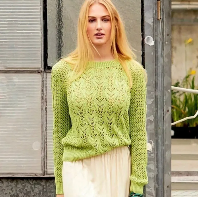 Салатовый джемпер спицами