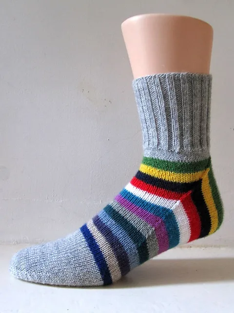 Ширина полосок на ваш вкус, но я вязала свой носок, который на фото, полосками из 5 рядов.