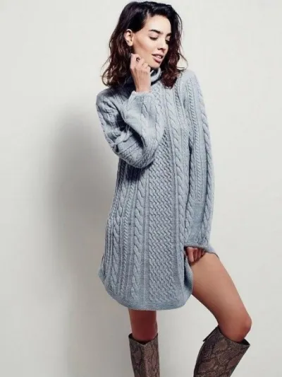 Стильное теплое вязаное платье