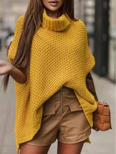 Идеальная модель для осени, включая золотисто - желтый цвет.Объемный, с цельновязанным рукавом и воротником-гольф. Спинка немного удлиненная, по бокам - длинные разрезы.Схема составлена для лицевых и изнаночных рядов в двух вариантах. Раппорт - 2 петли и 8 рядов. Накиды при снятии петель нужно делать свободными. А пряжа, конечно же, нужна объемная, иначе узор не будет так эффектно смотреться.