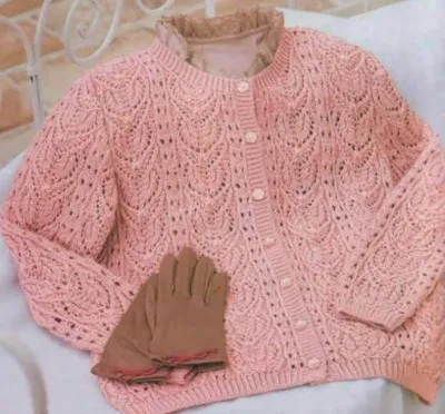 Выполнить плечевые швы. Поднять петли планки по вырезу горловины и связать планку 2 см резинкой 1х1. Затем отдельно по боковой стороне каждой полочки, в том числе по планке горловины. На правой полочке предусмотреть прорези для 7 пуговиц через равные расстояния. Вшить рукава, выполнить боковые швы и швы рукавов.