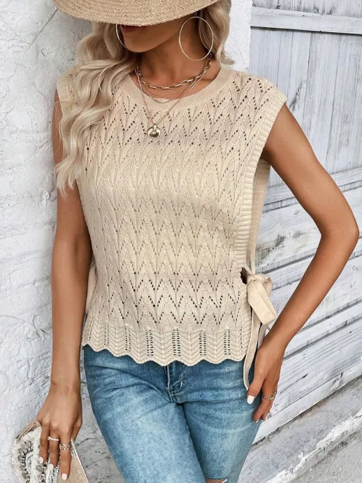 Безрукавка сшивается по плечевым швам. По краю ворота набираются петли и вяжется ворот резинкой 1х1 примерно 4-5 см.