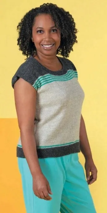 Вязать далее прямо, пока высота проймы не достигнет 18 (18, 19, 19, 20.5, 20.5, 21.5, 21.5, 23) см. Закрыть все петли.