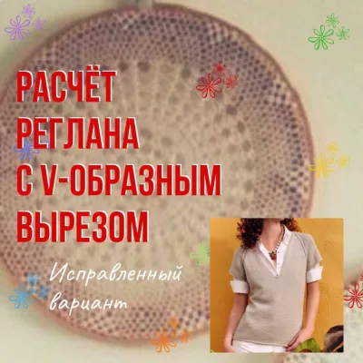 V-образный вырез начинаем вывязывать от передней регланной линии. Плотность вязания в приведённом примере: